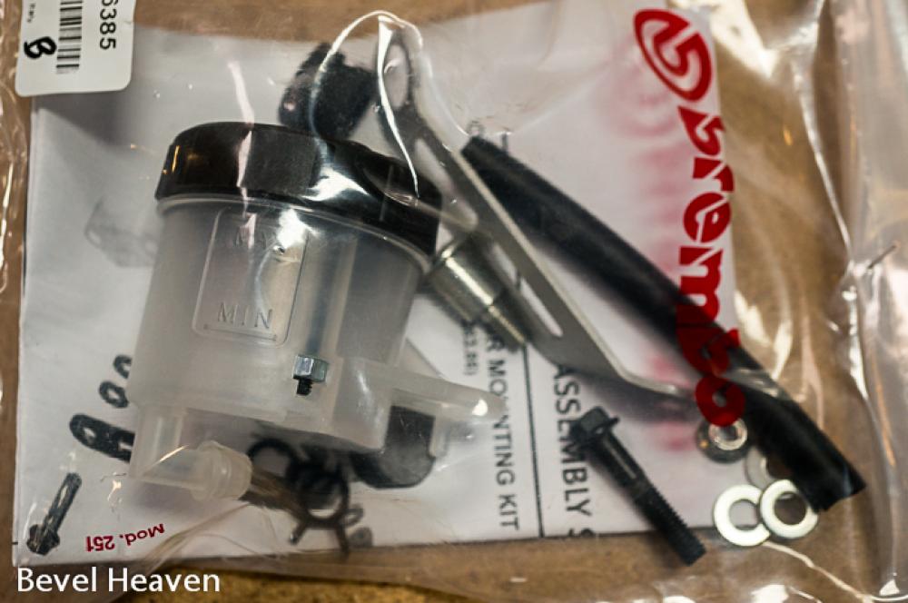 This is the specific Brembo RCS fluid reservoir mounting kit, includes bracket, hose, clamps, fasteners and reservoir - specifically for RCS brake radial pump master cylinders.
