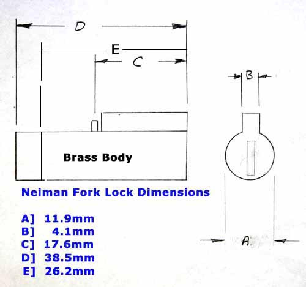 NEIMAN lock used for steering locks on bevel drive twins, seat locks etc with PLASTIC COVER ON KEY: this is just the lock, 2 keys & spring as shown.