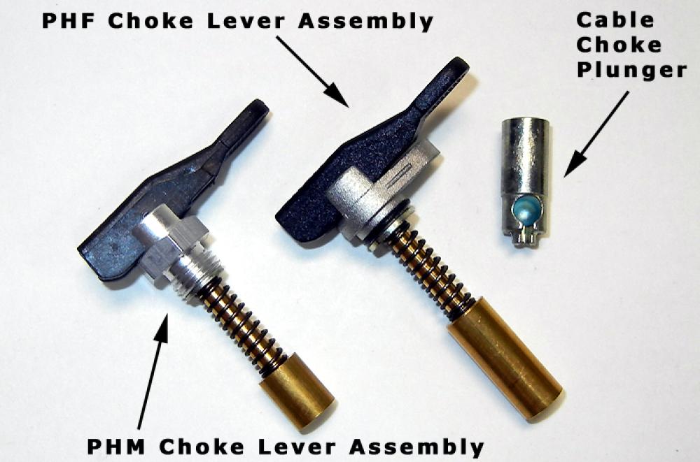 This is a pair of rubber mount type PHM 40mm carbies that come with a cable operated type choke setup and black plastic fuel banjos as shown. You can elect to buy them as shown or upgrade to metal fuel banjos (we highly advise doing this) and/or change to flip lever type choke setups mounted on your carbs. If you choose these upgrades we will ship your carbies to you with the upgrade(s) you chose installed.