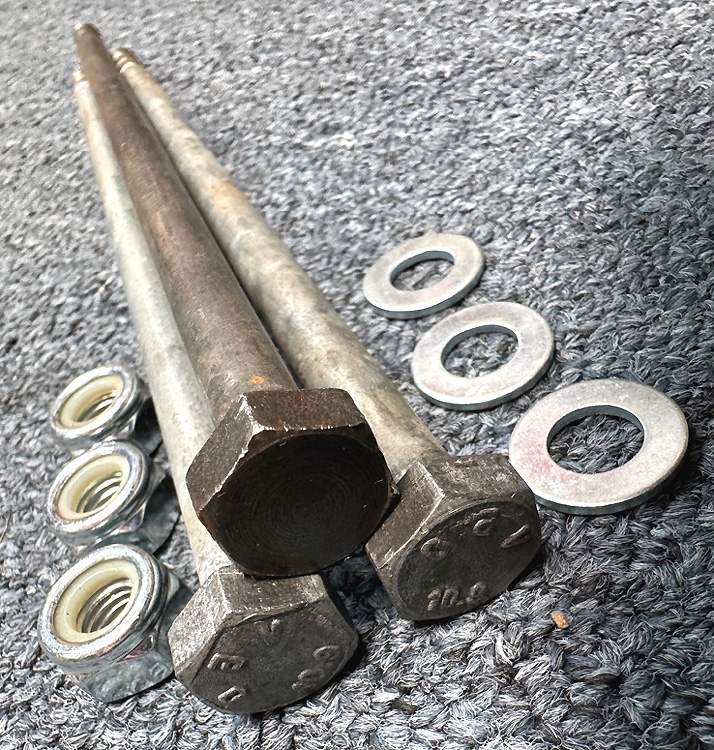 The bolts are all 3 original used factory items, the washers & nylocks are new.
