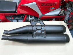Dual muffler setup for Sport 1000 & Paul Smart 1000 in VGC. Removed from a very low milage 1000 Sport. Dent and gauge free only some paint scrapes as you can see in the photos. Looking at the ends you see how clean these are indicating very minimal use before beign swapped out.